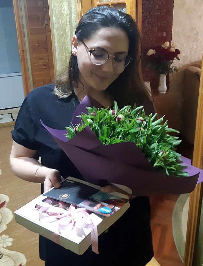 Букет в руках получателя