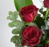 Состав букета:Розы – 9 шт, эвкалипт – 6 ветки, аспидистра 6 ветки, стеклянная ваза.