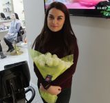 Состав:Кремовые розы - 31 шт, упаковка, лента.