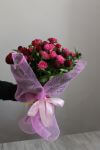 Состав букета:розовые пионы — 7 шт., роза кустовая — 4 шт., лента.