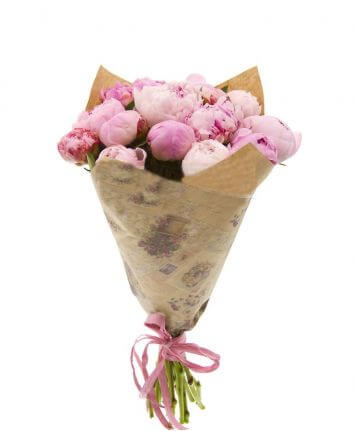 Состав букета:пионы розовые — 15 шт., упаковка, лента.