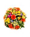 Состав букета:кустовая роза — 9 штук, гербера — 9 штук, альстромерия — 9 штук, танацетум камилла, аспедистра, салал.