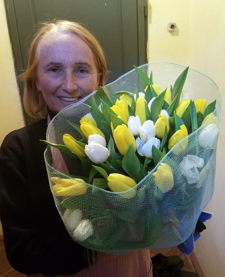 Состав букета:Тюльпаны желтые – 51 шт., лента.