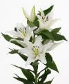Композиция выполнена с цветами:белая лилия, другие белые цветы, зеленая листва.