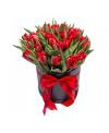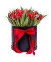 Состав коробки:тюльпаны красные — 35 шт., коробка — 1 шт., лента.