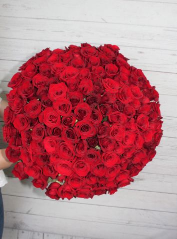 Заказать 101 Красную розу с красным бантиком с курьерской доставкой в любое время суток по отличной цене – это выделяет нас среди конкурентов. Наши низкие расценки имеют место для того, чтобы любой имел возможность выбрать замечательный подарок для дорогого человека.