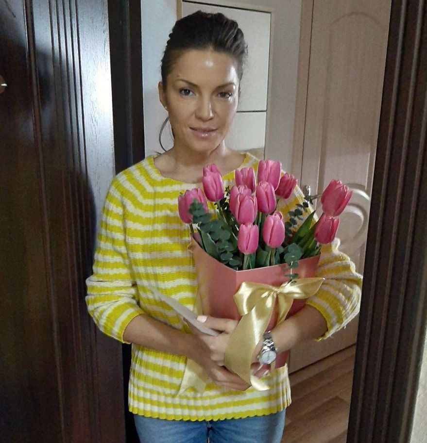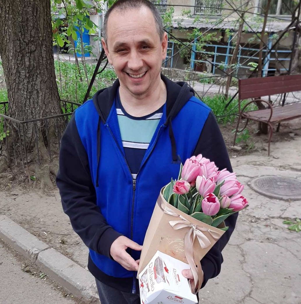 Состав коробки:Тюльпаны розовые — 45 шт., Коробка — 1 шт., лента.