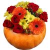 Состав:5 ветки ромашковой хризантемы, 9 красных роз, 5 герберы, тыква.