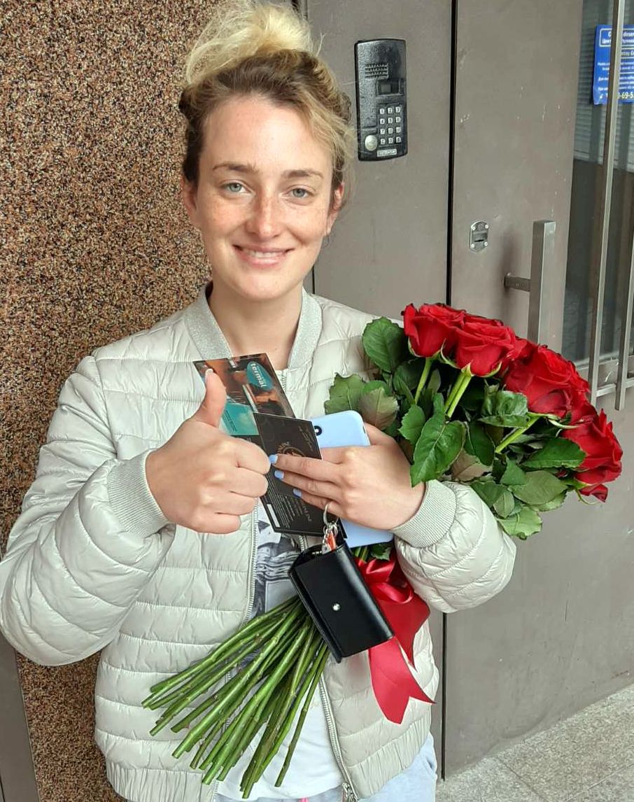 Bouquet in the hands of the recipient