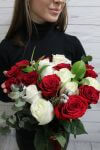 The composition of the bouquet:Red roses - 19 pcs, white roses - 15 pcs.