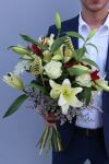 Bouquet of white roses, lilies, alstroemeria - 1 pcs.