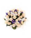 Bouquet composition:creamy roses — 10 pcs, irises — 5 pcs.