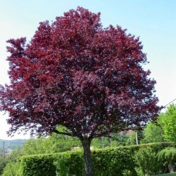 A small tree up to 6 m high with a wide ovoid, densely leafy crown. Young shoots are red, later - light brown. The leaves are elongated-oval, not pubescent, glossy, about 7 cm long. The upper side of the leaf is brown-red, the lower - intense red. In the fall, the leaves turn bright red. The flowers are large, up to 2.5 cm in diameter, pink, on thin light pink pedicels, appear before the leaves bloom and at the end of flowering acquire a dark red color. The fruits are numerous, dark cherry red, rounded.