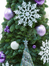Christmas tree decorated with classic Christmas balls, sparkling snowflakes and other beautiful attributes.