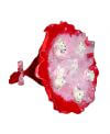 Состав:5 мишек, конфеты Raffaello , органза, кружева, атласная лента. Высота - 35 см, окружность 32-см