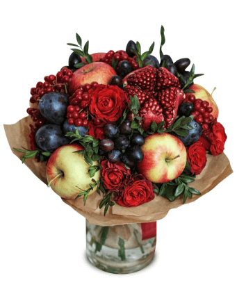 Состав :Яблоки красные - 4 шт, Гранат - 3 шт, виноград- 4 шт,зелень