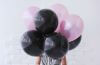 Воздушные шарики наполнены гелием. Композиция состоит из розовых и черных шаров.