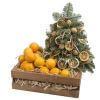 Состав композиции:ящик декоративный – 1 шт., декоративная елка – 1 шт., мандарины – 17 шт, грейпфрут – 1 шт, апельсин – 1 шт.