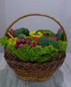 Содержание:салат, перец, редис, помидоры, брокколи, шпинат, огурец, чили. Вес корзины 6 кг