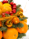 Compoziția este prezentată în straturi de molid, portocale, mandarine și, desigur, bile de Crăciun colorate. O farfurie minunată va decora o masa de vacanță și apoi fiecare oaspete va putea să mănânce unul dintre fructele lor preferate.