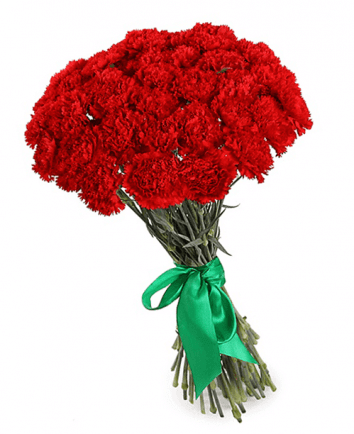 Compozitie buchet:Garoafe roșii — 35 buc., panglică.