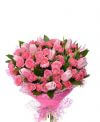 Compozitia :mini roze - 8 buc., lalele roz - 15 buc.