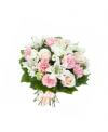 Compozitia:trandafiri cream – 5 buc.,garoafe roz – 5 buc.,crini albi – 1