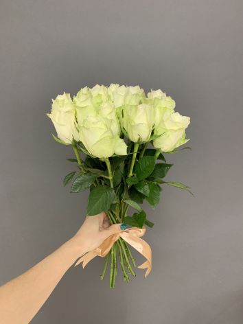 Compozitie buchet:Trandafiri albi — 15 buc., panglică.