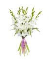 Compozitie buchet:gladiole albe - 15 buc., panglica.