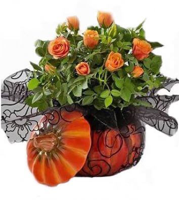 Trandafiri portocalii într-un dovleac