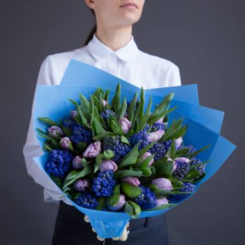 Compoziția buchetului:zambile - 29 buc, lalele – 30 buc.