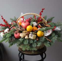 Compoziție de Crăciun în coșul „Fructe cu miere”