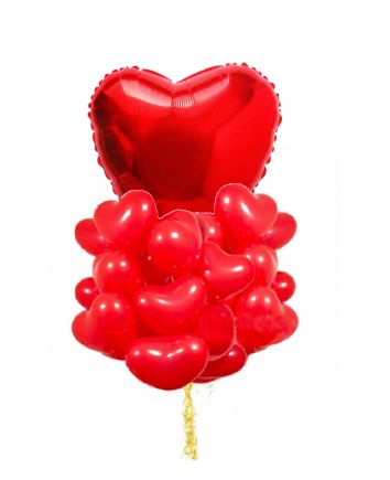 Состав композиции:1 фольгированный шарик "Большое сердце" - 75 см. и 6 шариков "Сердце" - 25 cm.