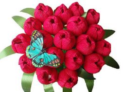 В эпоху технологий, для того что бы купить букет цветов из гофрированной бумаги и конфет, не надо ходить по цветочным магазинам, ведь можно сделать заказ на вебсайте CadouriOnline. На нашем сайте у вас есть возможность купить букет цветов из гофрированной бумаги и конфет. Что требуется для того, чтобы приобрести подарок у нас на сайте? Найти в нашем каталоге букет цветов из гофрированной бумаги и конфет и нажать кнопку заказать. При осуществлении покупки на нашем сайте, вам нужно написать контакты. В случае если во время оформления заказа вы столкнулись с сложностями - позвоните нашему менеджеру. Менеджер сайта избавит вас от лишних хлопот и поможет сэкономить ваше время. После оформления заявки, наш флорист создаст букет цветов из гофрированной бумаги и конфет, который растопит сердце любой девушки. Далее, наш сотрудник, вмиг привезет букет цветов из гофрированной бумаги и конфет по требуемому адресу. По задумке клиента менеджер может оповестить вашу барышню, либо сделать внезапный подарок. Вашей барышне будет безмерно приятно получить неожиданный сюрприз!