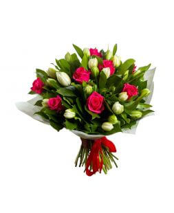 Букет розы с тюльпанами